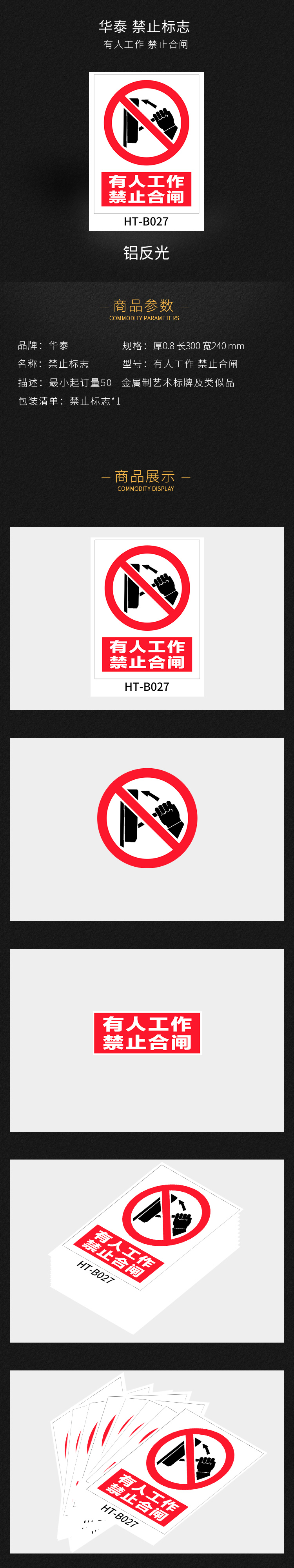 华泰 有人工作 禁止合闸 禁止标志 300*240*0.8mm (单位:张)