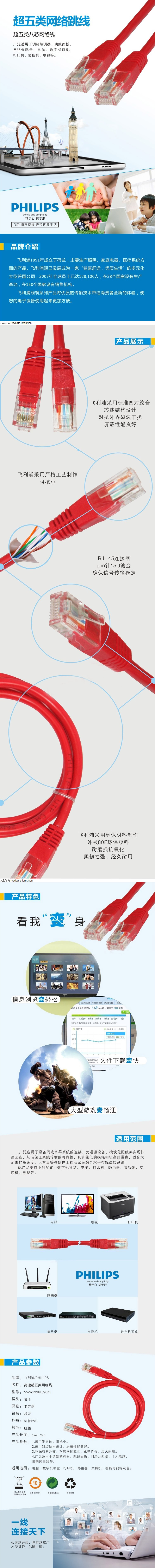 飞利浦(PHILIPS)超五类高速网络跳线2米 SWA1938R/93-2 红色