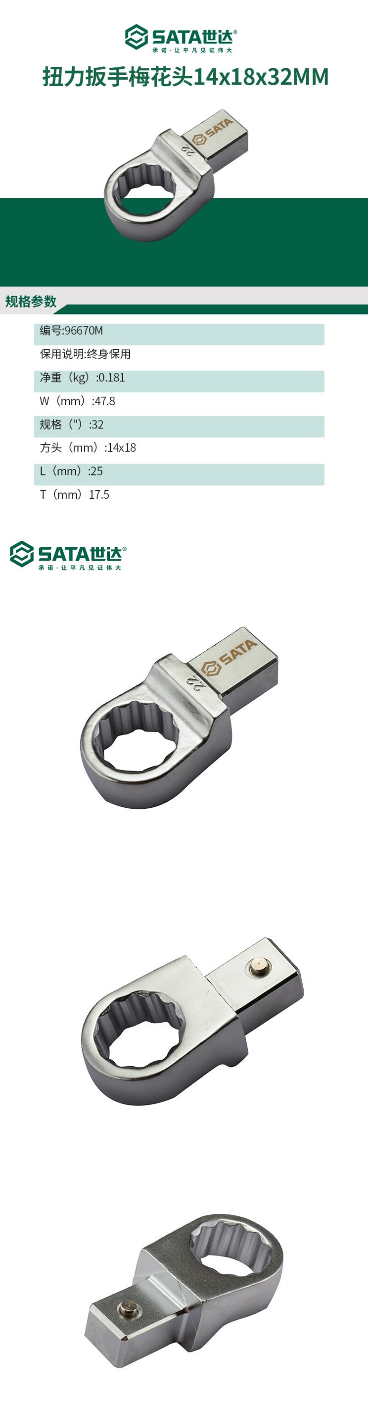 世达(SATA) 96670M 扭力扳手梅花头14x18x32MM(单位:个)