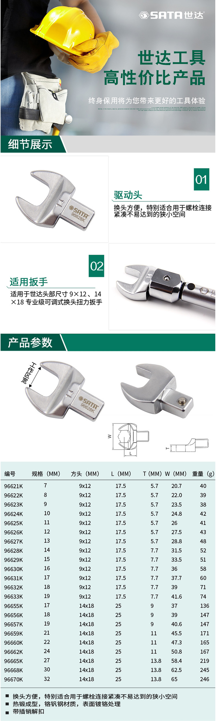 世达(SATA) 96670K 扭力扳手开口头14x18x32MM(单位:个)