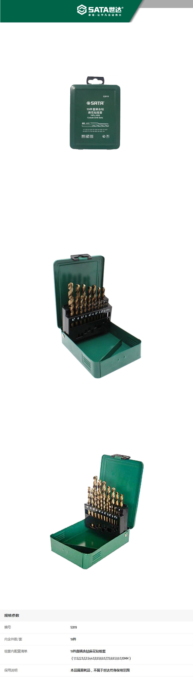 世达(SATA) 52819 19件直柄含钴麻花钻组套