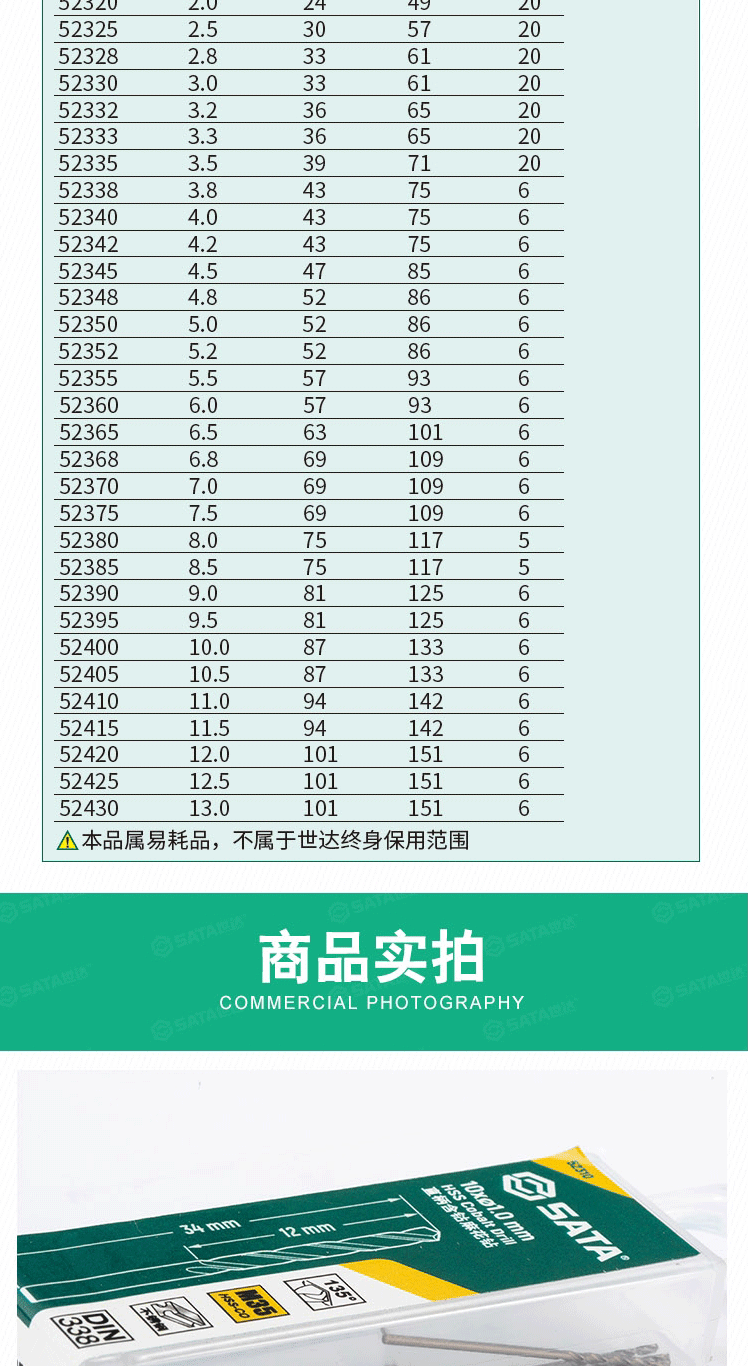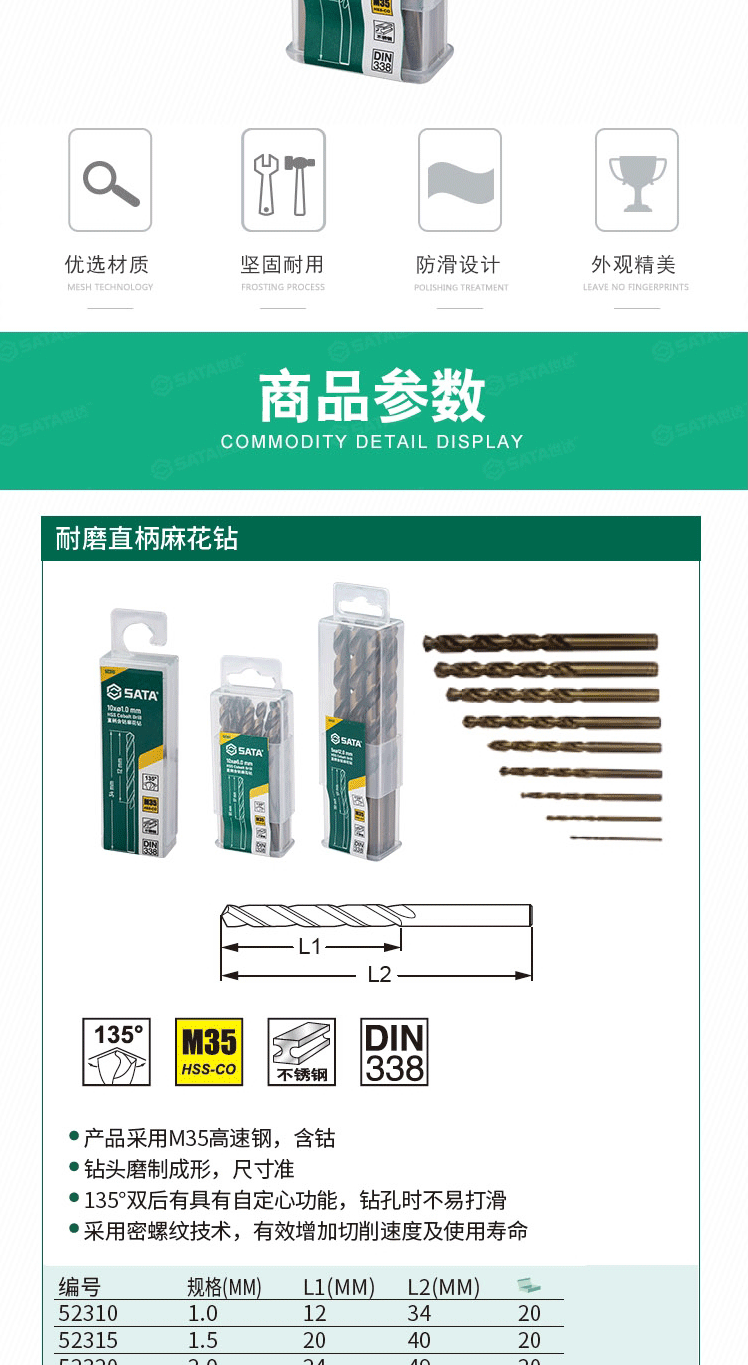 世达(SATA) 52350 10件套直柄含钴麻花钻5.0 MM