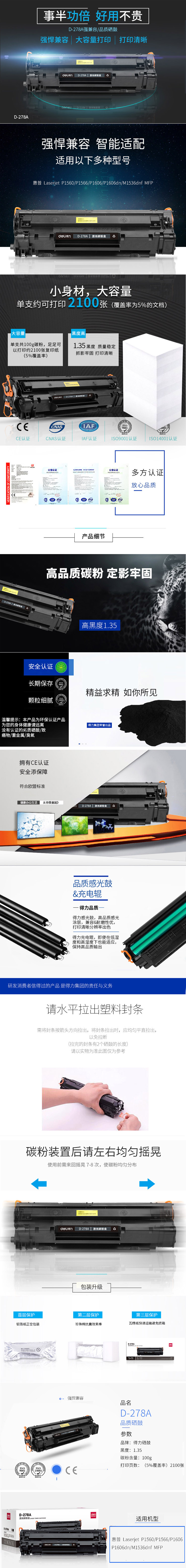 得力/deli D-278A 激光碳粉盒(单位:支) 适用于HP P1566 P1606dn M1536dnf 黑色