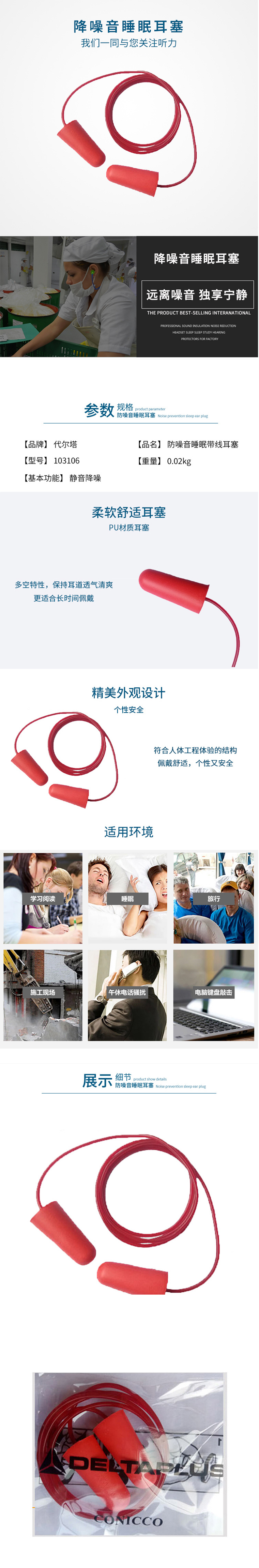 代尔塔(Delta) 103106 耳塞 200副/盒 (单位:盒)