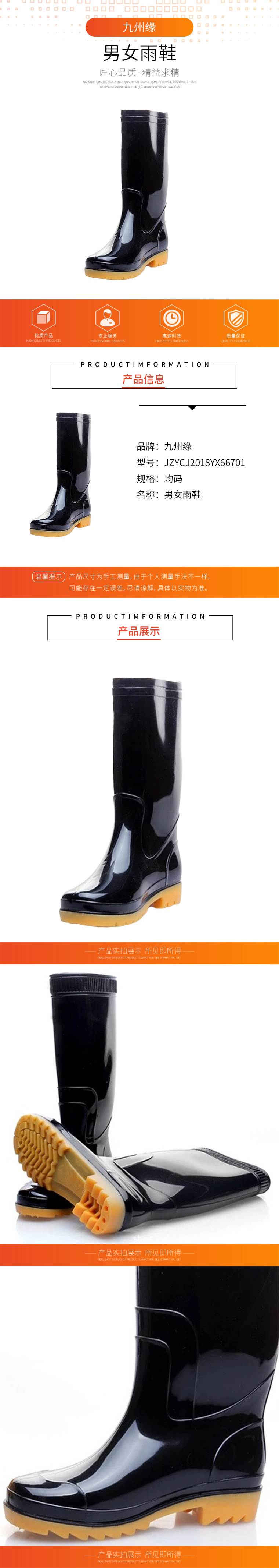 九州缘 JZYCJ2018YX66701 男女雨鞋 均码 (单位:双) 黑色