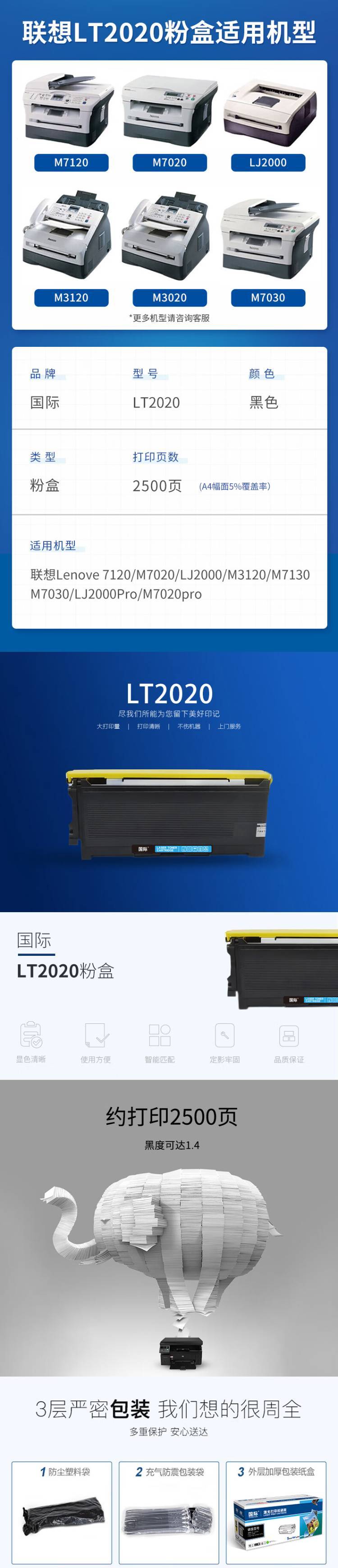 国际 墨粉盒 BF-LT2020 黑色 2500页 适用联想LJ2000/LJ2050N/M7020/M7030/M7120/M7130N/M3020/M3120