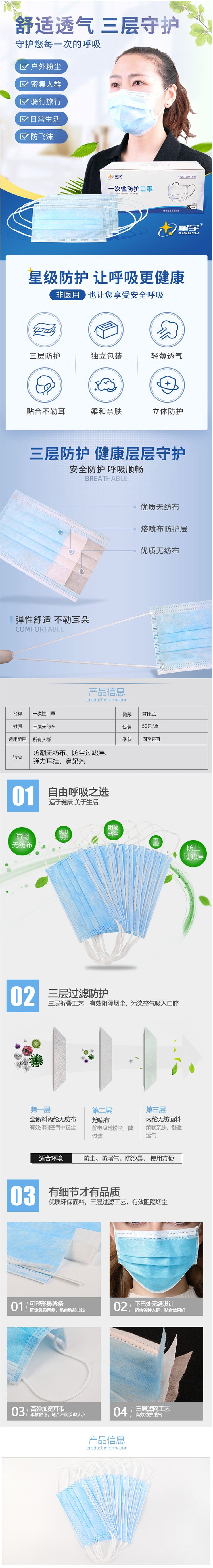 名称 星宇 一次性口罩 三层防护(50只盒)