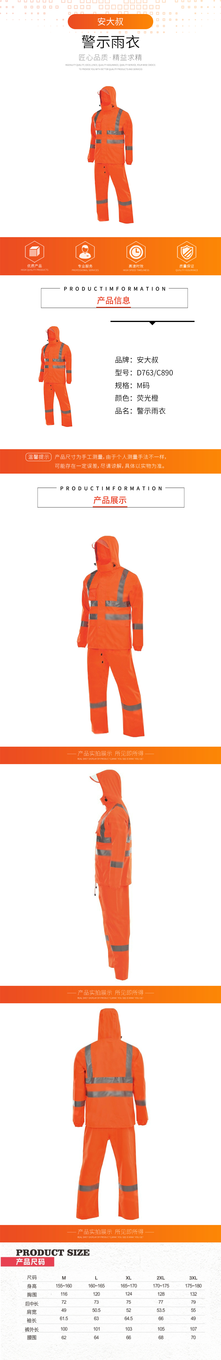 安大叔 D763/C890 警示雨衣 M码 (单位:套) 荧光橙