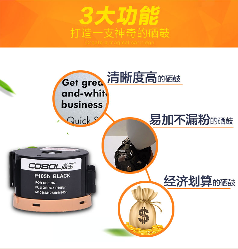 高宝(COBOL)P105b标准版粉筒适用FUJI XEROX DocuPrint P105b/M105f/M105ab/M105b/P158b/M158b/等