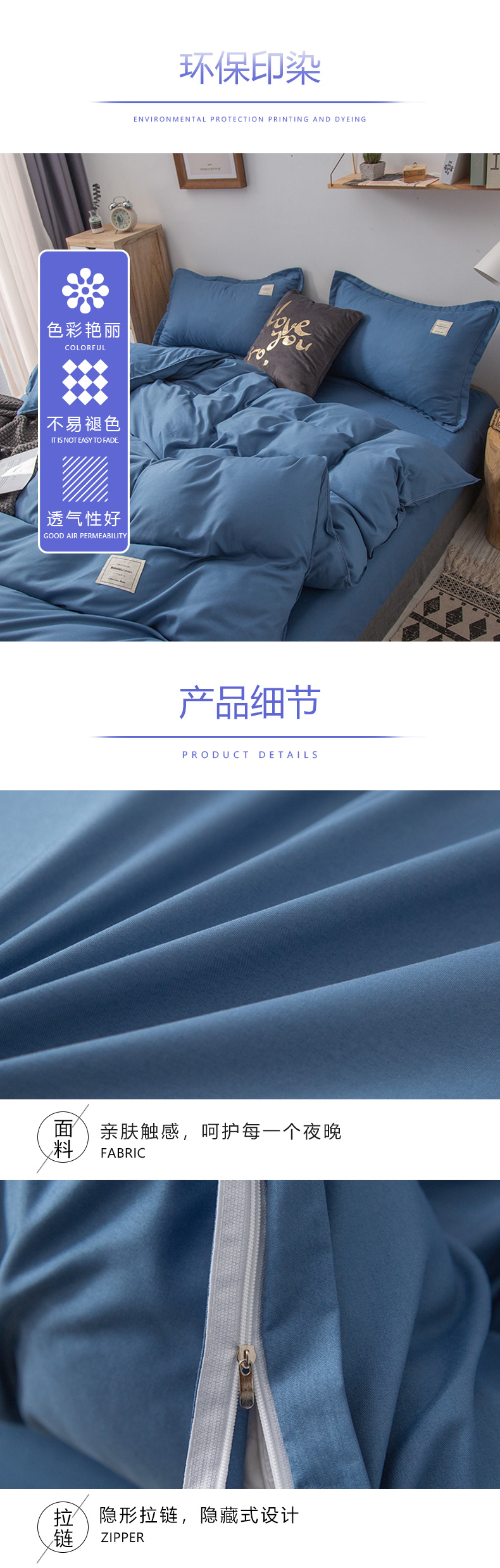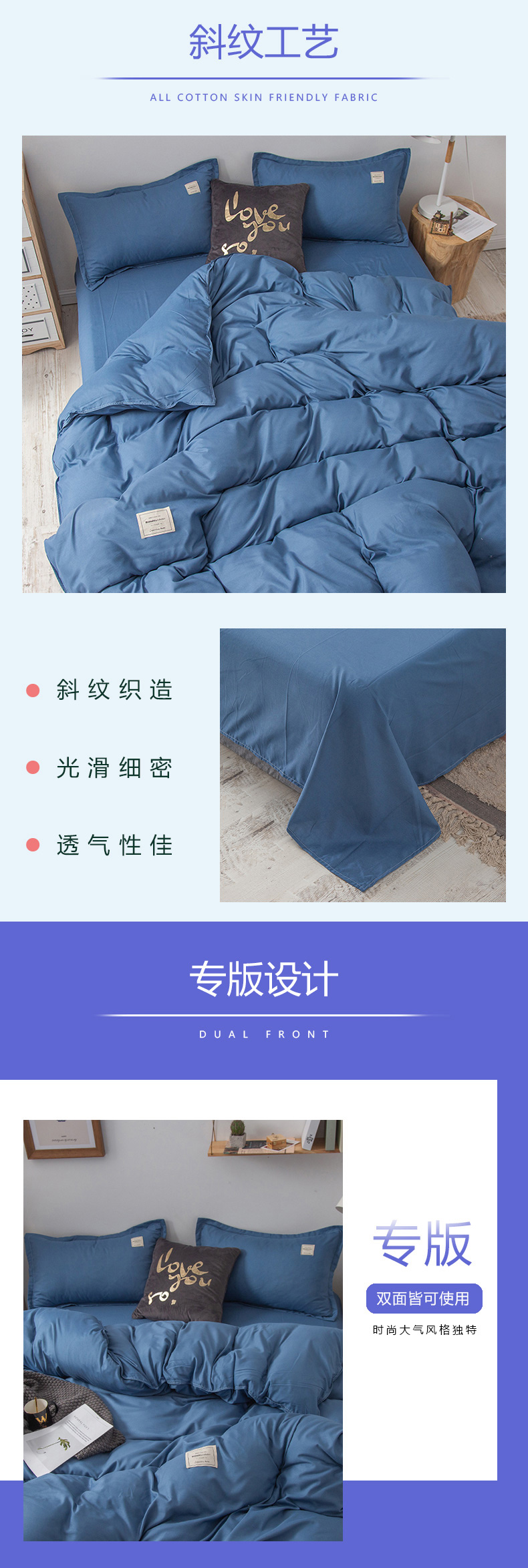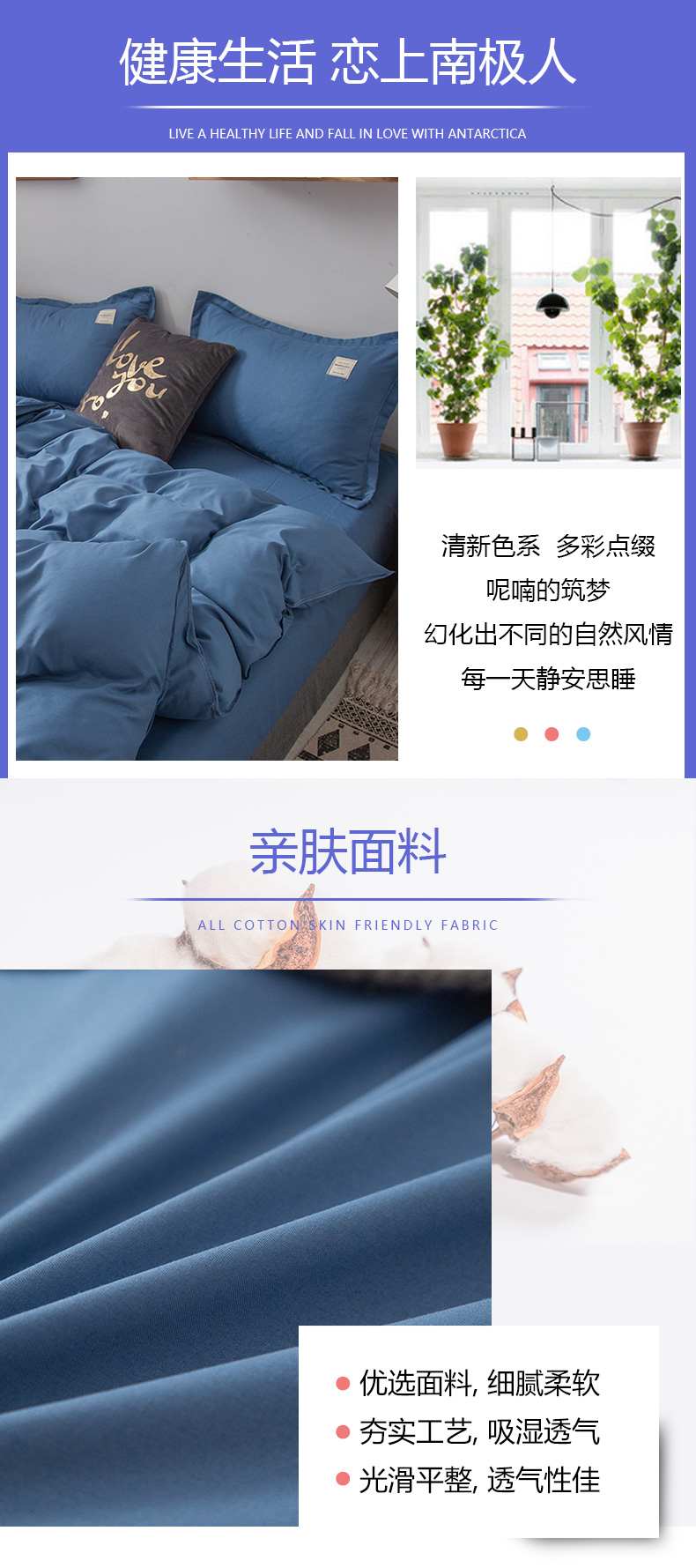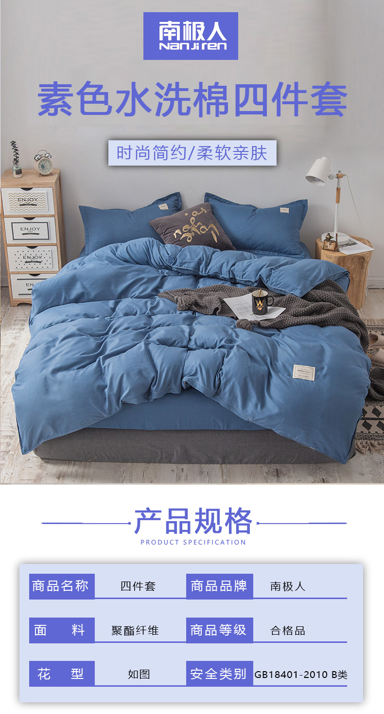 南极人(NanJiren) 素色水洗棉四件套 200*230cm
