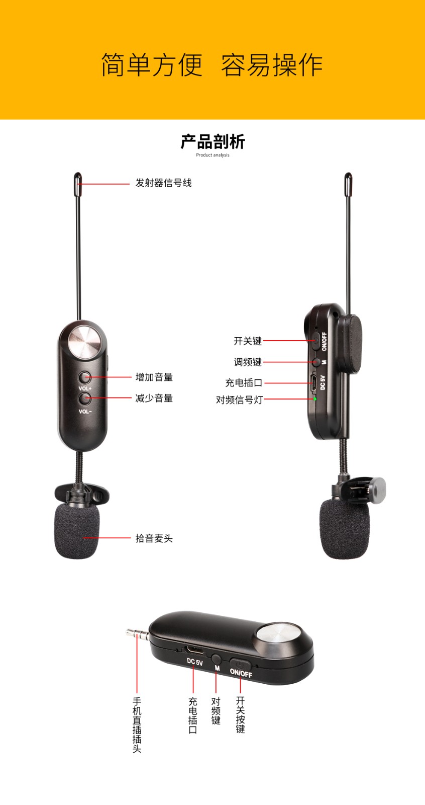 小蜜蜂 无线领夹充电麦克风 一拖二