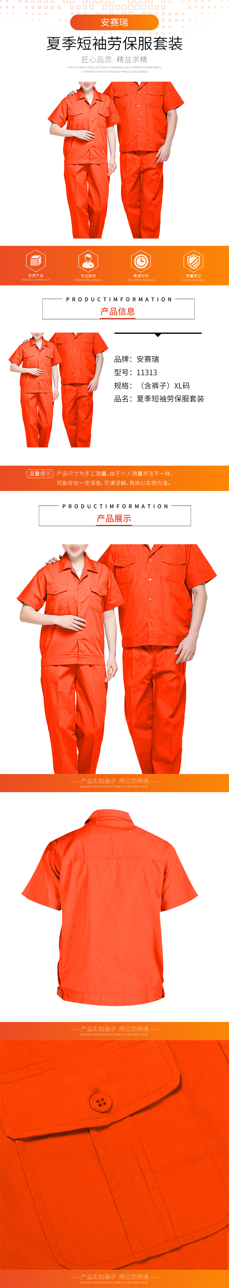 安赛瑞 11313 夏季短袖劳保服套装 XL码 (单位:套) 含裤子 橘色