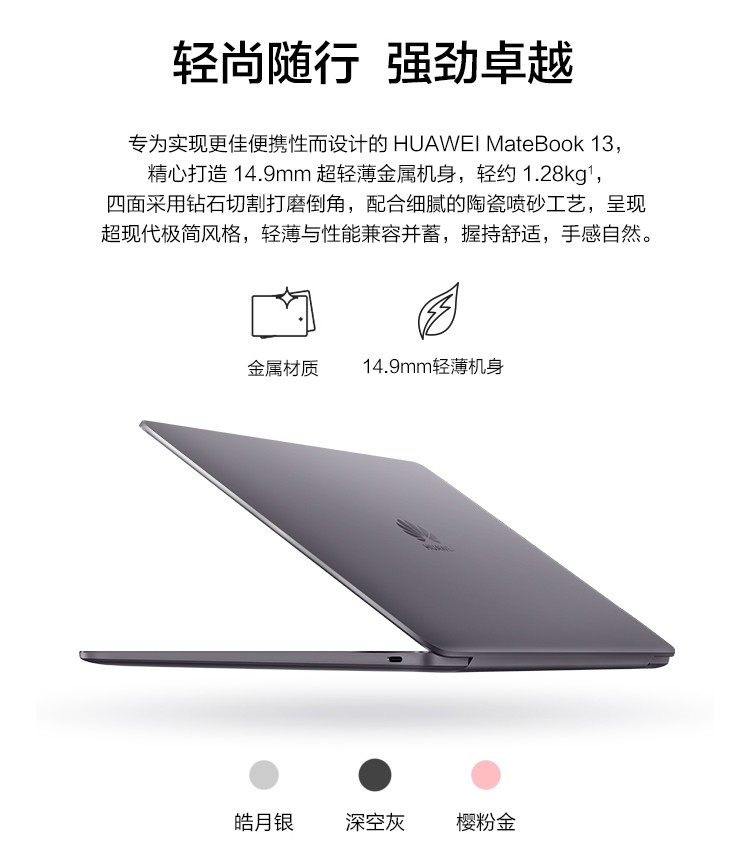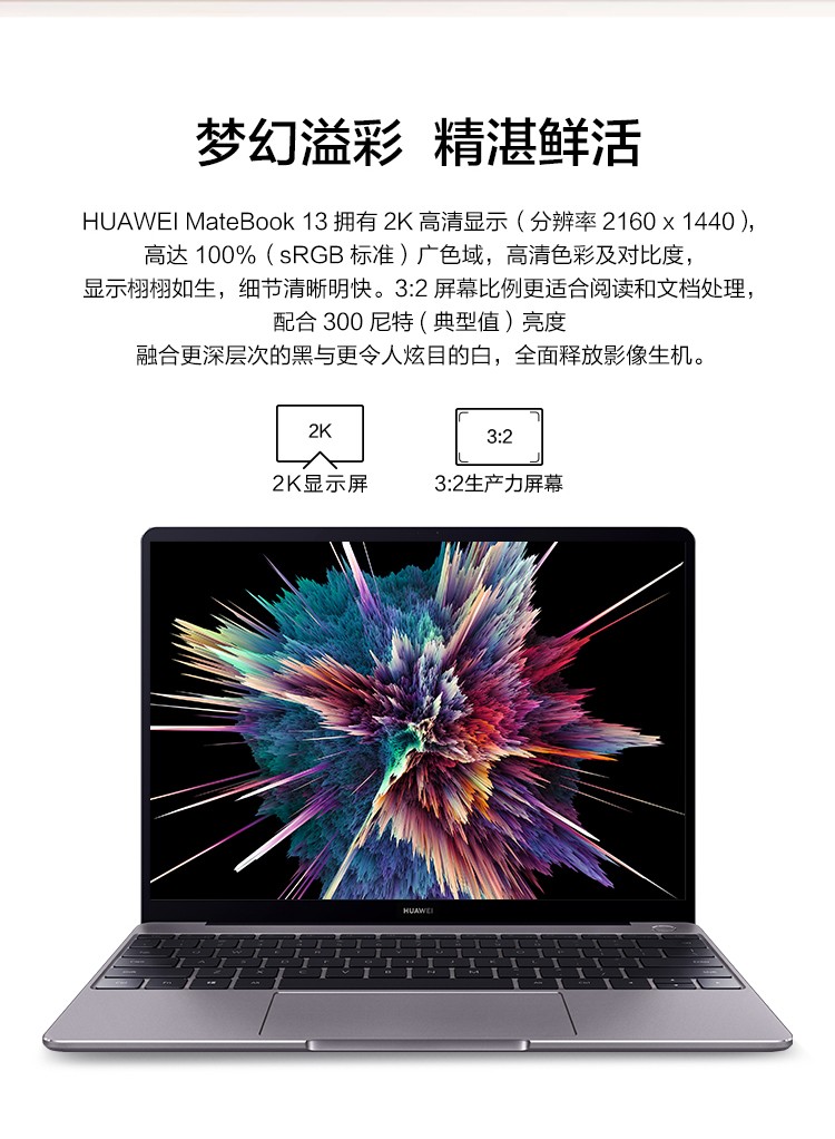 华为(HUAWEI) 笔记本电脑 MateBook 13 2020款 (WRTB-WFH9L)银色i5-10210U/16G/512G/MX250-2G独显/无光驱/13寸2K触控屏/WIN10/两年保修
