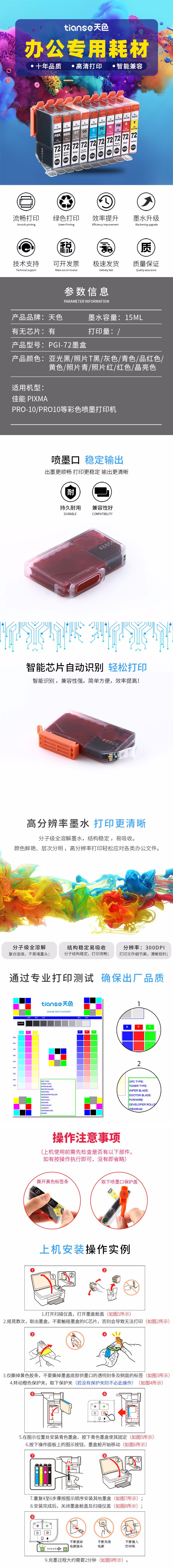 天色 红色墨盒 佳能 PGI-72 适用于CANON PIXMA PRO-10/PRO 10等彩色喷墨打印机