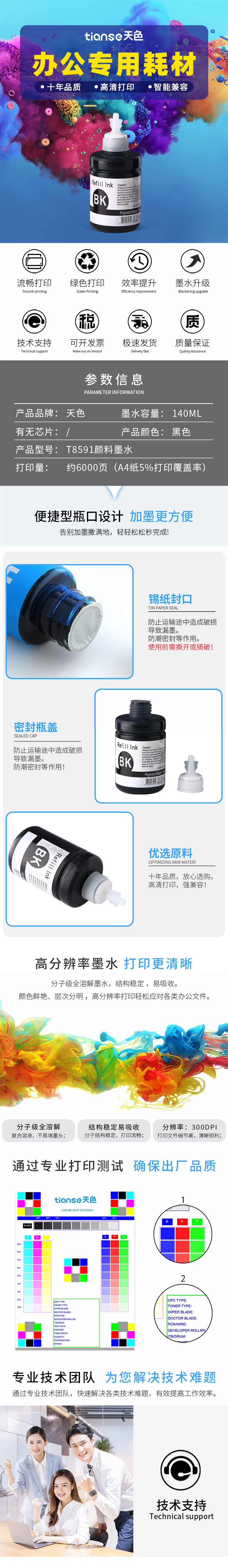 天色 黑色墨水 爱普生 T8591 140ml 适用于EPSON M105/M205/L6056/L655/L1455