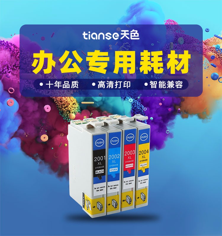 天色 黄色墨盒 兼容爱普生 T2001/2/3/4 适用于SPSON XP-100/200/300/400/310/410 WF-2520/2530