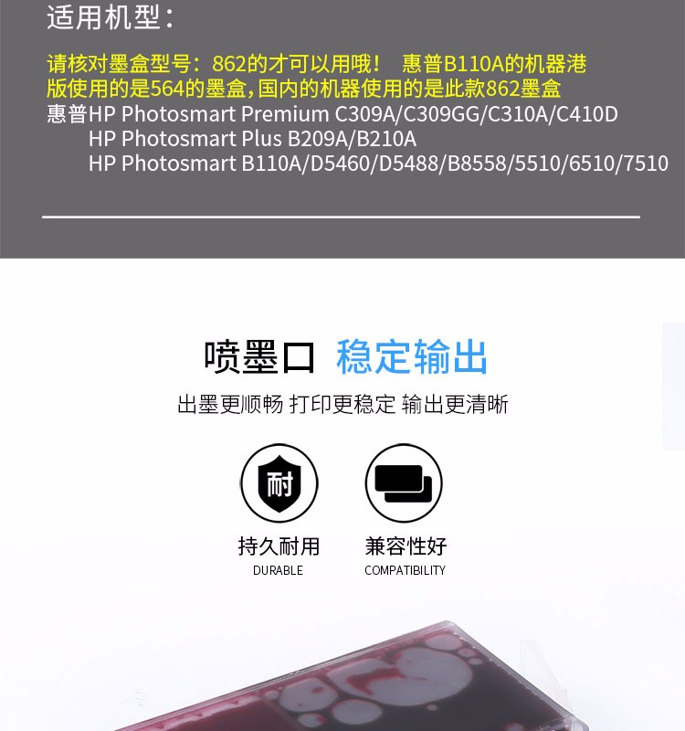 天色 青蓝色墨盒 兼容惠普 862XL 适用于HP PHOTOSMART PREMIUM C309A/C309GG/C310A/C410D