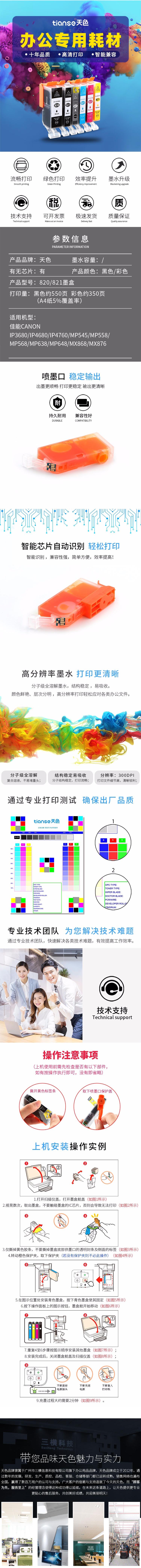天色 黑色墨盒 兼容佳能 PGI820/CLI-821 适用于CanonPixmaIP3600/IP3680/IP4600/IP4680