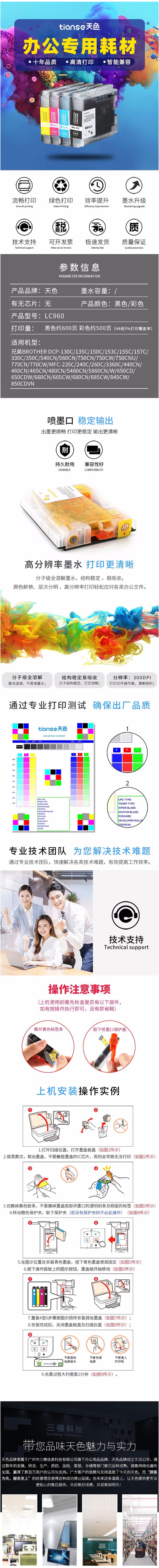 天色 黑色墨盒 兼容兄弟 LC960 适用于BrotherDCP-130C/135C/150C/155C/157C/330C/350C/540CNBrotherMFC-235C/240C