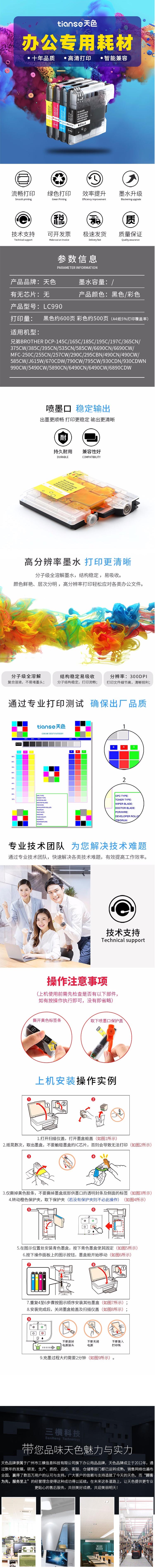 天色 黄色墨盒 兼容兄弟 LC990 适用于BrotherMFC-250C/290C/490CW/990CW/5490CN/5890CN/6490CWBrotherMFC-670CD