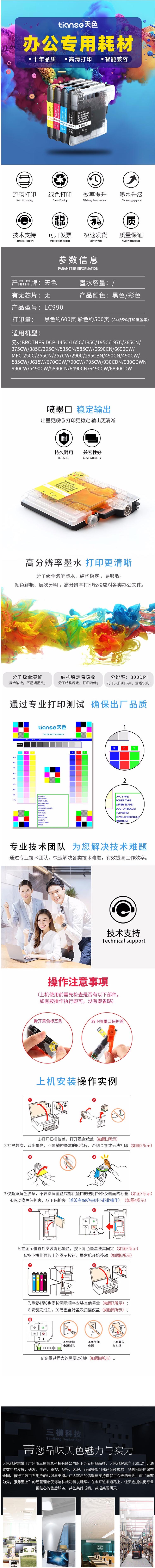 天色 青蓝色墨盒 兼容兄弟 LC990 适用于BrotherMFC-250C/290C/490CW/990CW/5490CN/5890CN/6490CWBrotherMFC-670CD