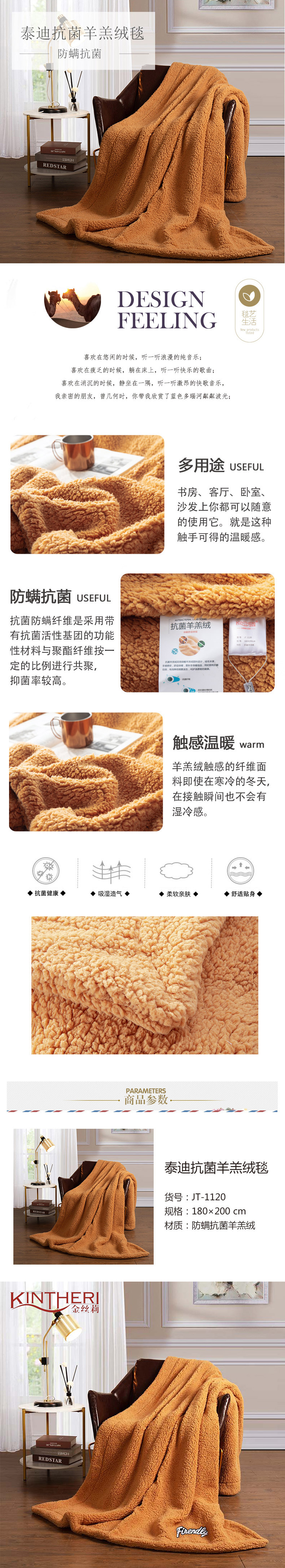 金丝莉 泰迪抗菌羊羔绒毯 JT-1120 180×200cm 防螨抗菌羊羔绒