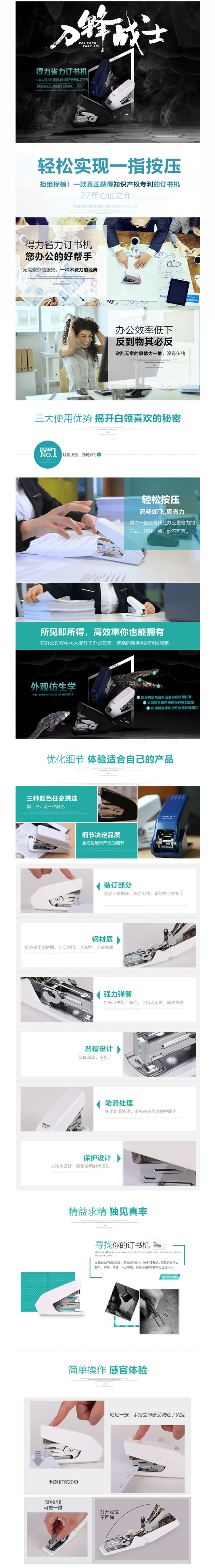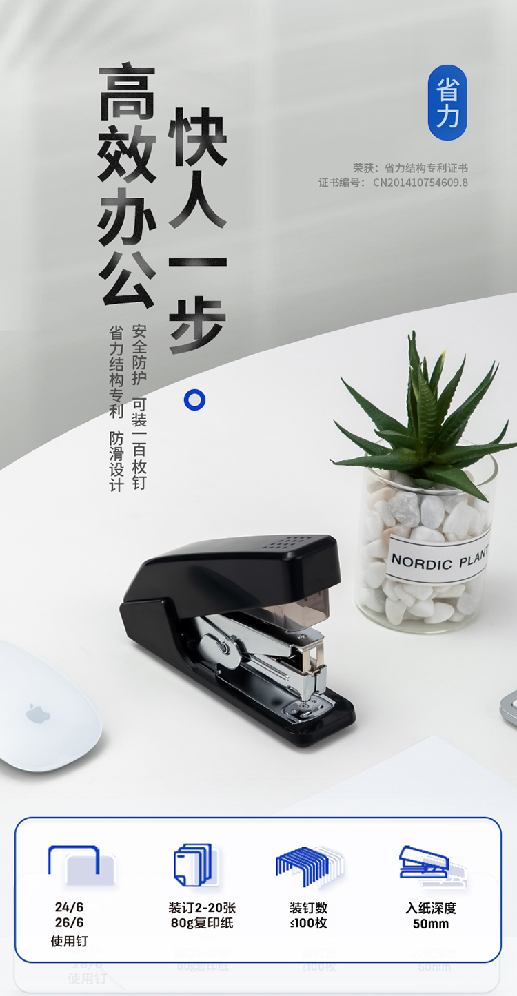 商品名称 得力(Deli) 省力订书机 0467 黑色 装订20层纸 装钉100枚 1/6/72