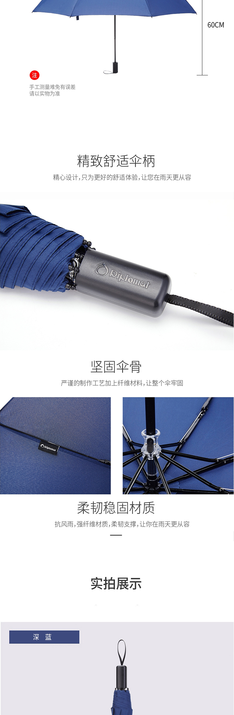 外交官(Diplomat) 手工三折伞 DFJ-602-2 酒红色