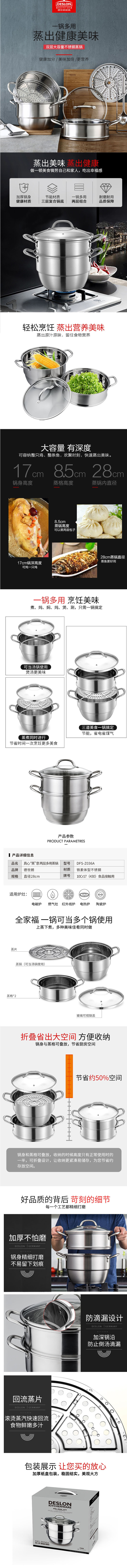 德世朗(DESLON) 真心“蒸”意 两层多用蒸锅 DFS-Z036A 28cm