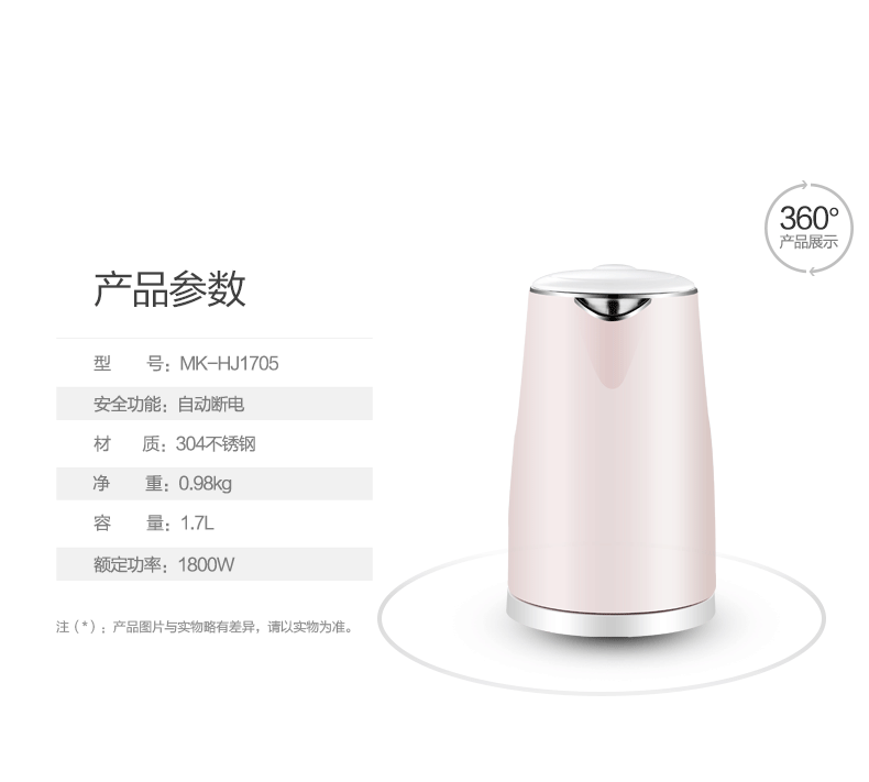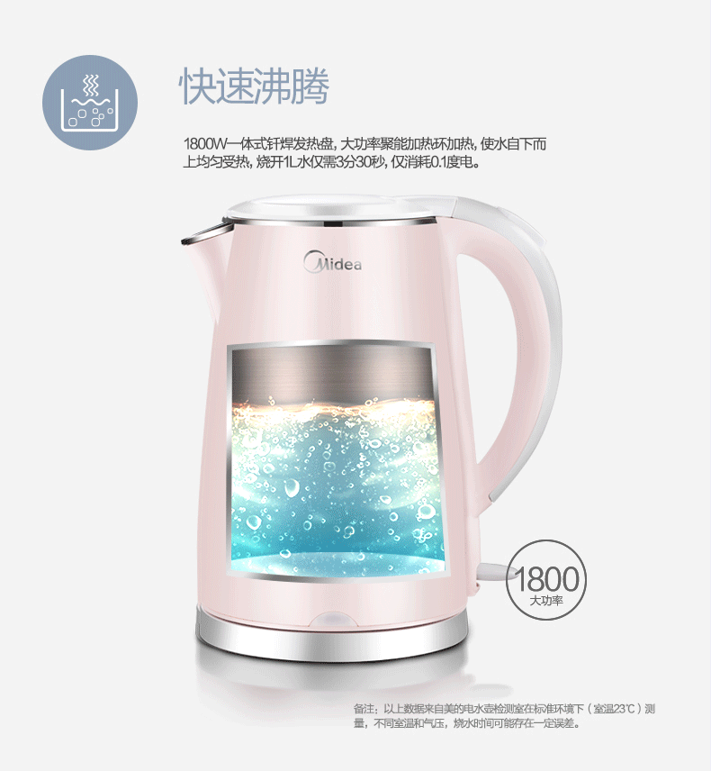 美的(Midea) WHJ1705b 304不锈钢电热水壶 1.7L(单位:个)