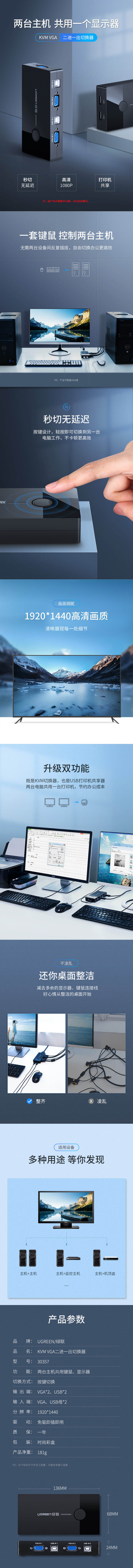 绿联(UGREEN) 多功能KVM切换器 CM154 30357 黑色