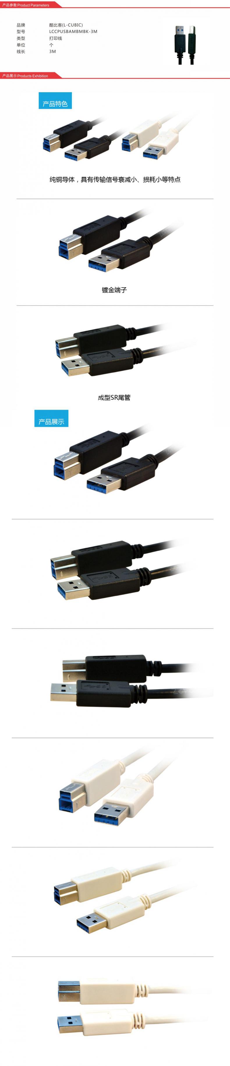酷比客(L-CUBIC) LCCPUSBAMBMBK USB2.0打印机线 3M (单位:个)