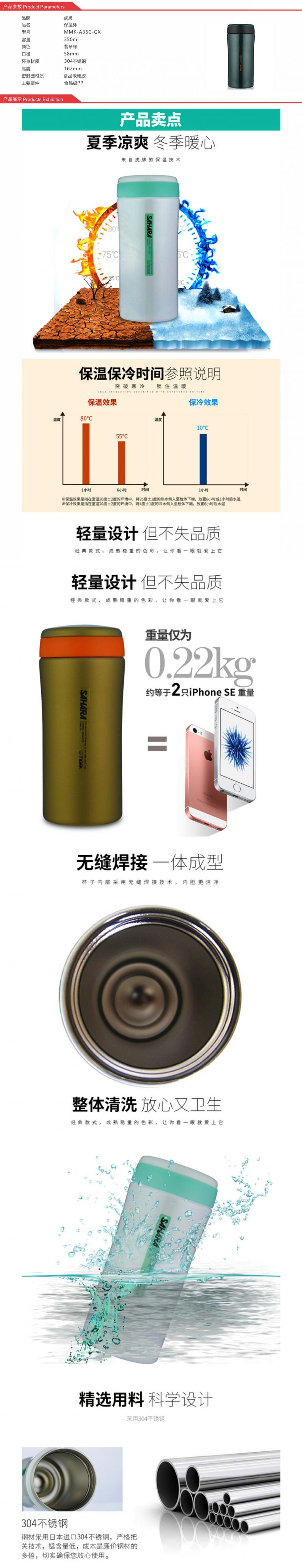 虎牌(TIGER) 不锈钢保温杯 MMK-A35C-GX 翡翠绿 350ml 1/1