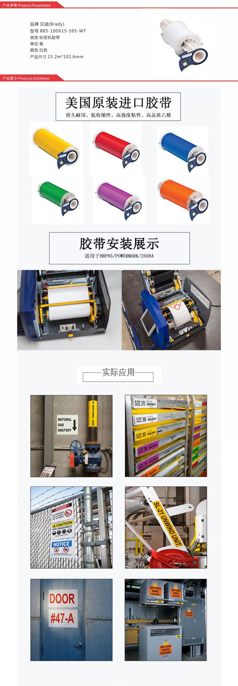 贝迪(Brady) 标签机胶带 B85-100X15-595-WT