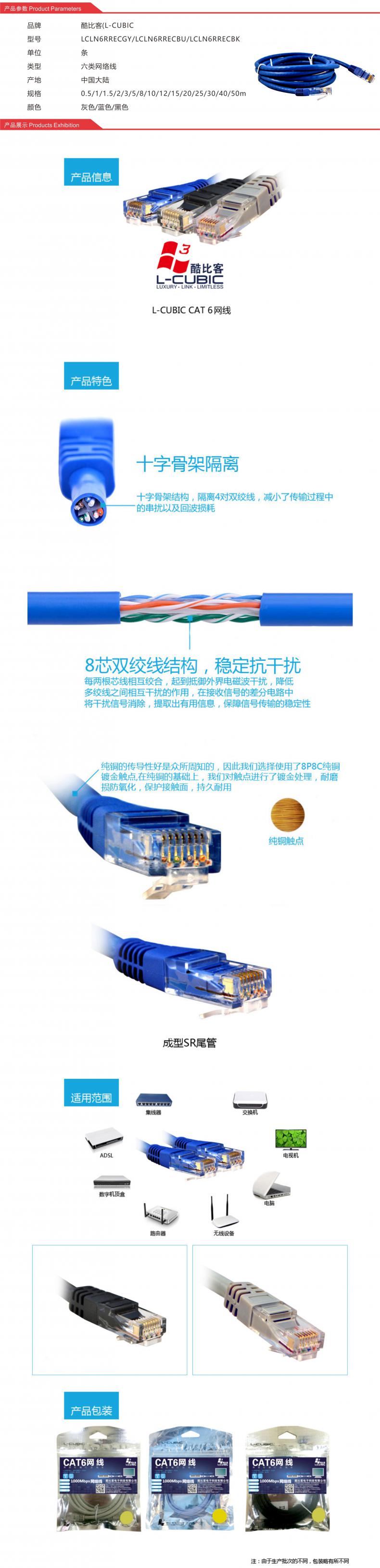 酷比客(L-CUBIC) 六类网络线 LCLN6RRECBU-5M 蓝色