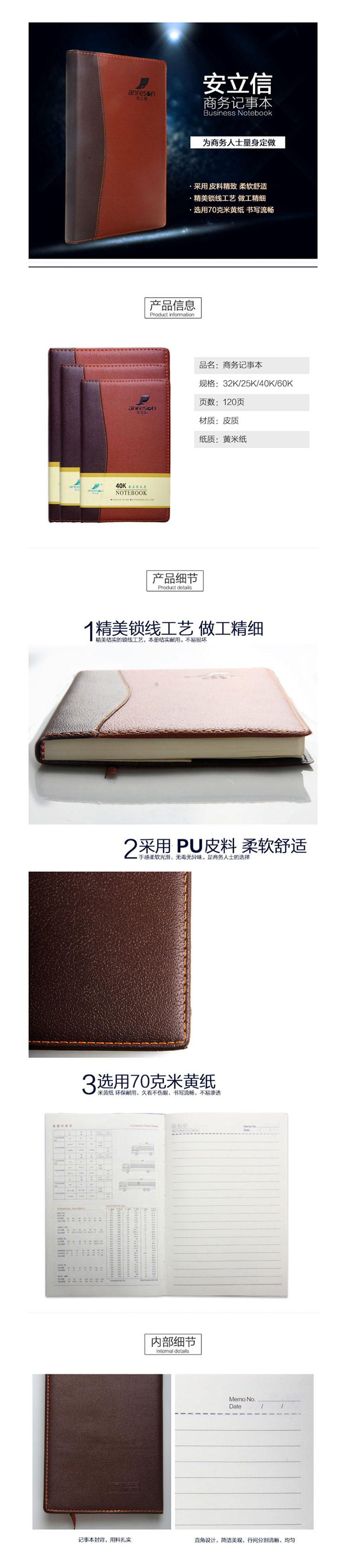 安立信 记事本 3816 棕色 70克黄纸 16K 120页 1/60