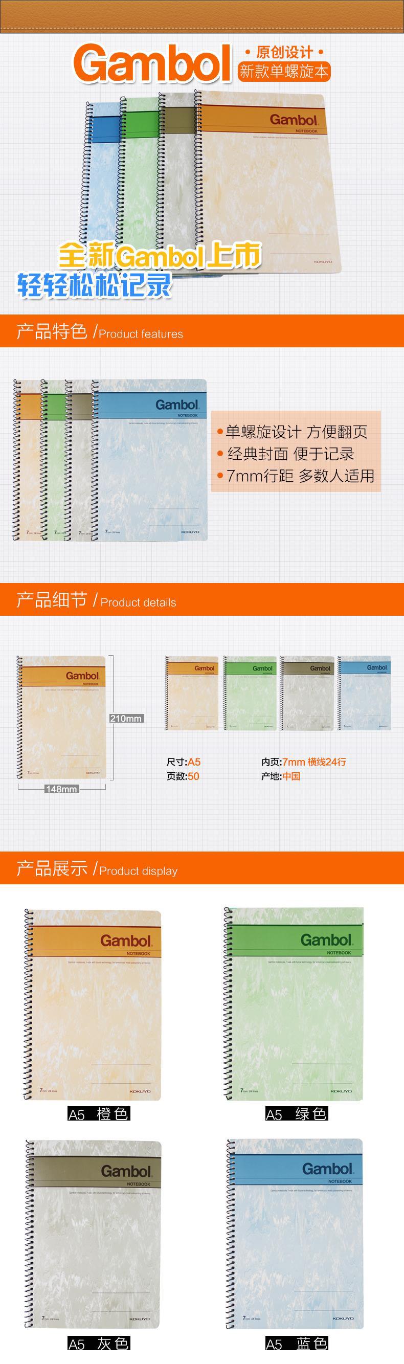 国誉Gambol螺旋笔记本WCN-S5503混色