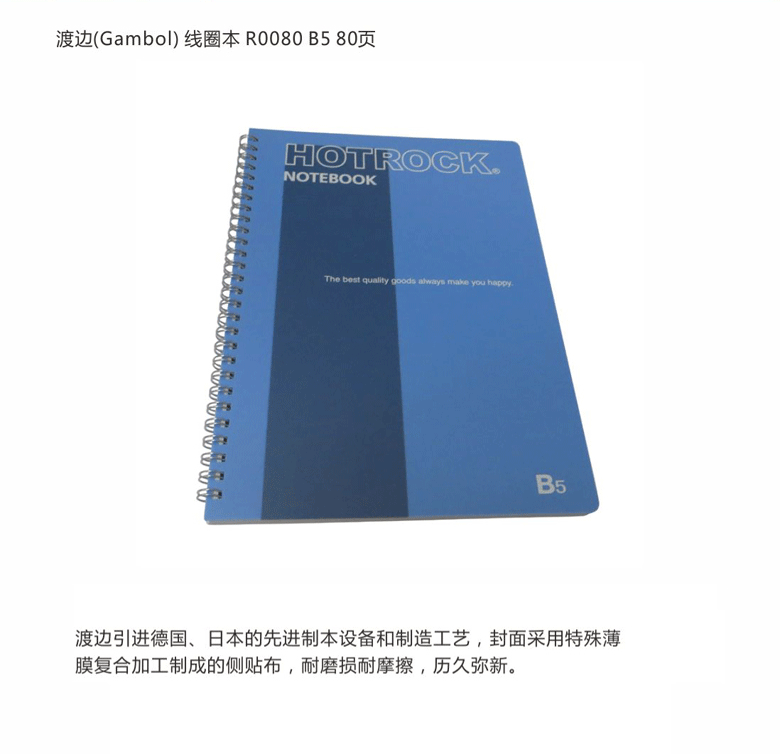 国誉(Gambol)Hotrock螺旋装订本WCN-R0080规格 B5 页数 80页 8mm横线 封面硬度 软面抄 颜色 橙色