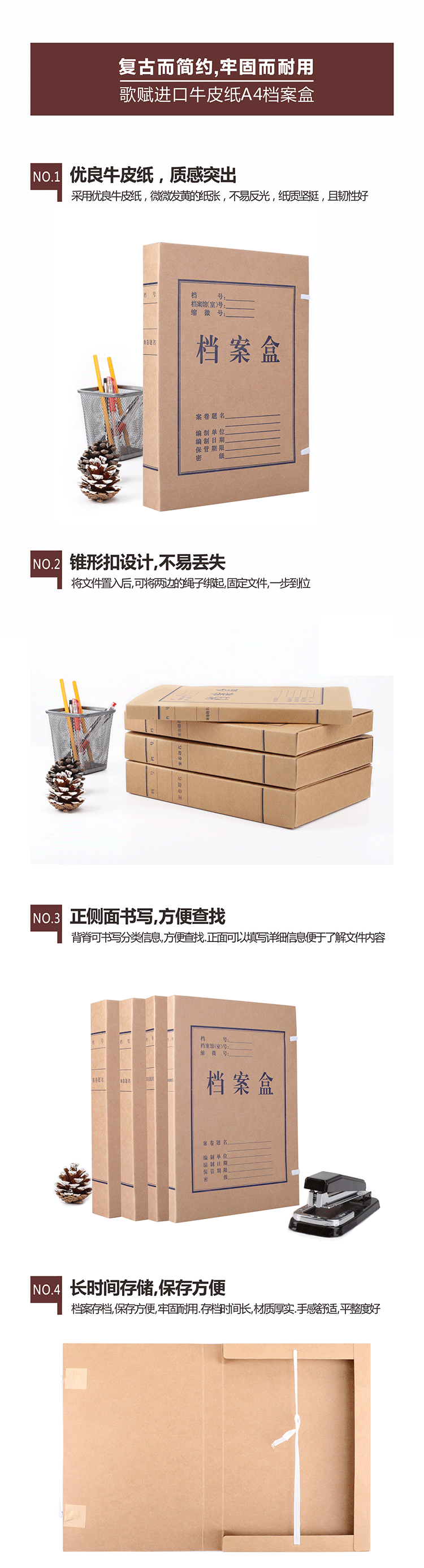 歌赋进口牛皮纸档案盒2862-1克数 700g 大小 A4 尺寸 31*22*2cm 材质 牛皮纸