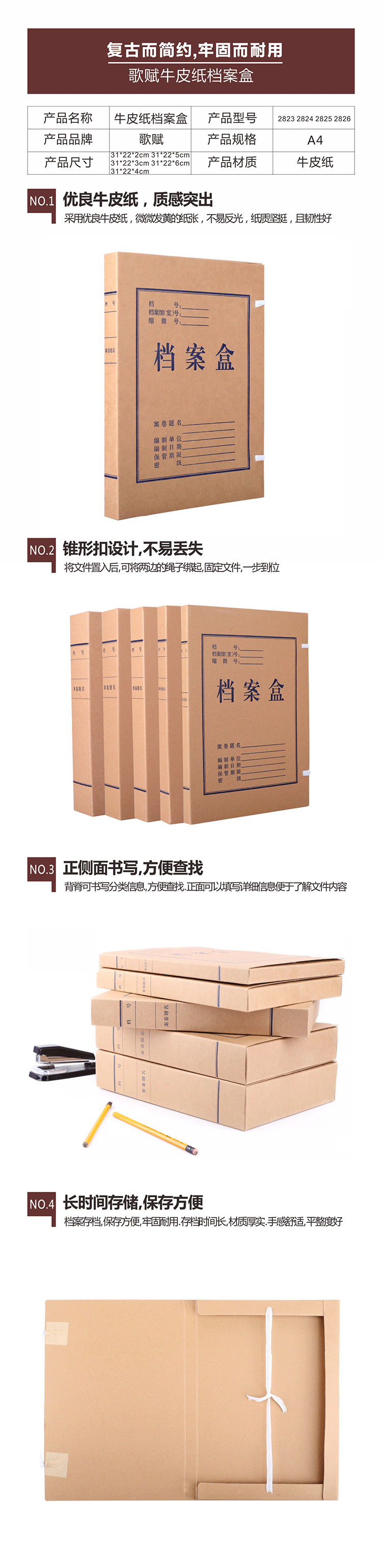 歌赋国产牛皮纸档案盒2823600g A4 尺寸 31*22*3cm 材质 牛皮纸