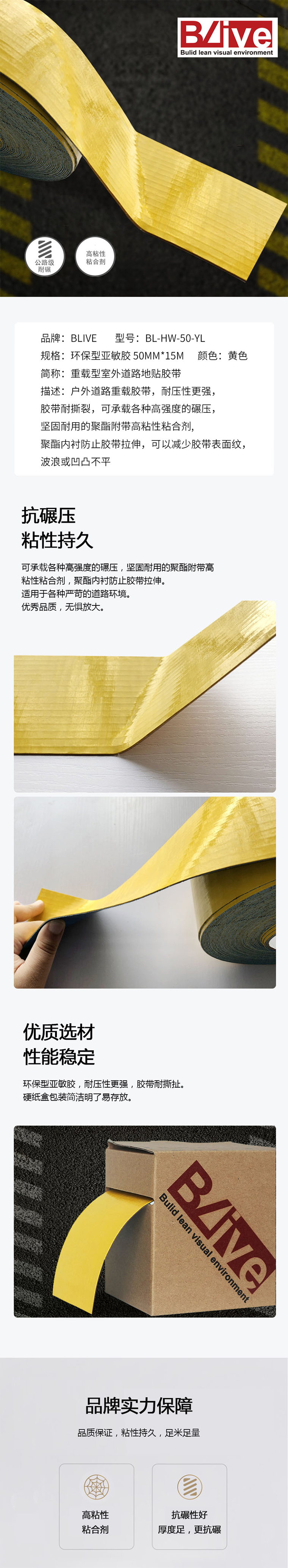 BLIVE BL-HW-50-YL 重载型室外道路地贴胶带 50MM*15M (单位:卷) 环保型亚敏胶 黄色