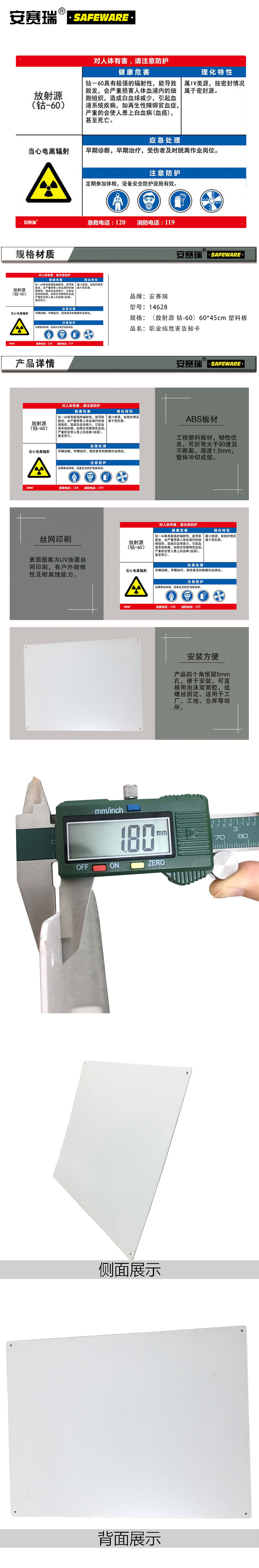 安赛瑞 14628 塑料板 职业病危害告知卡 60*45cm (单位:张) 放射源 钴-60