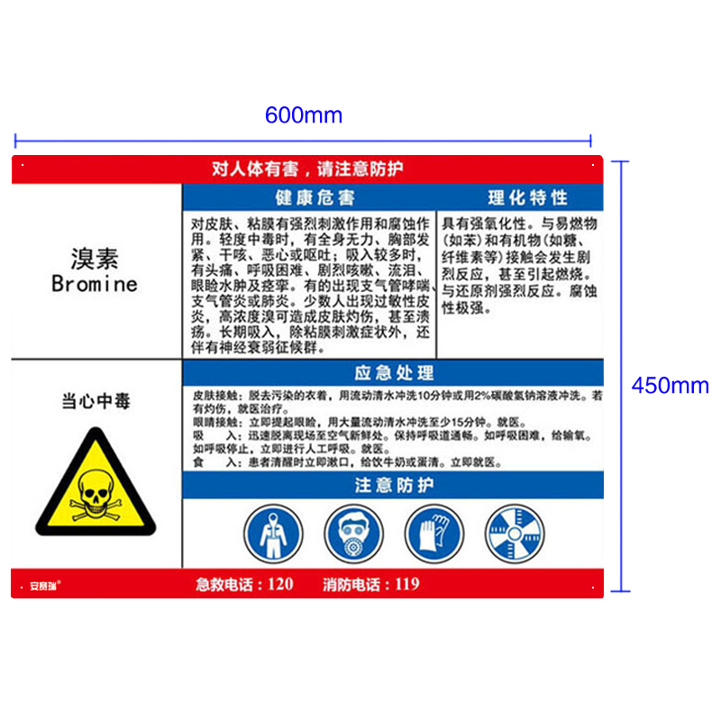 安赛瑞 14619 塑料板 职业病危害告知卡 60*45cm (单位:张) 溴素