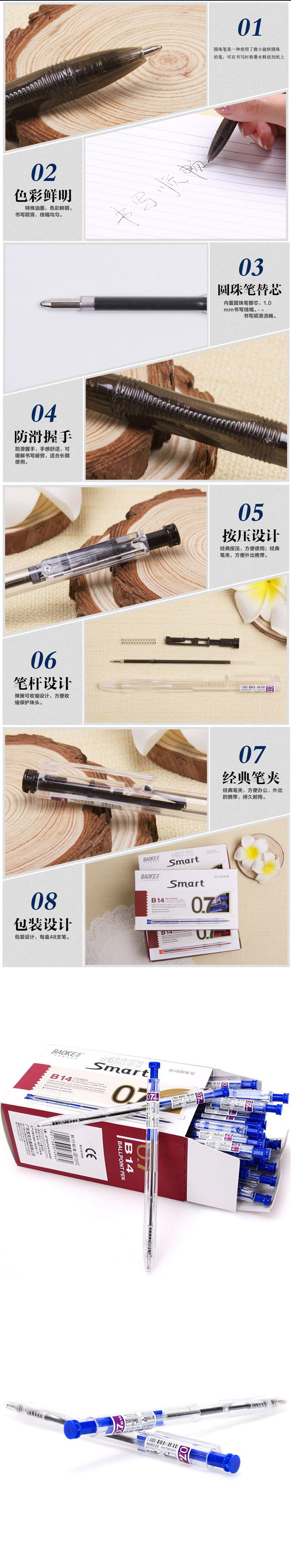 宝克(Baoke) 圆珠笔 B-14支 线幅 0.7mm 打开方式 按压式 笔 头类型 子弹头形 红色