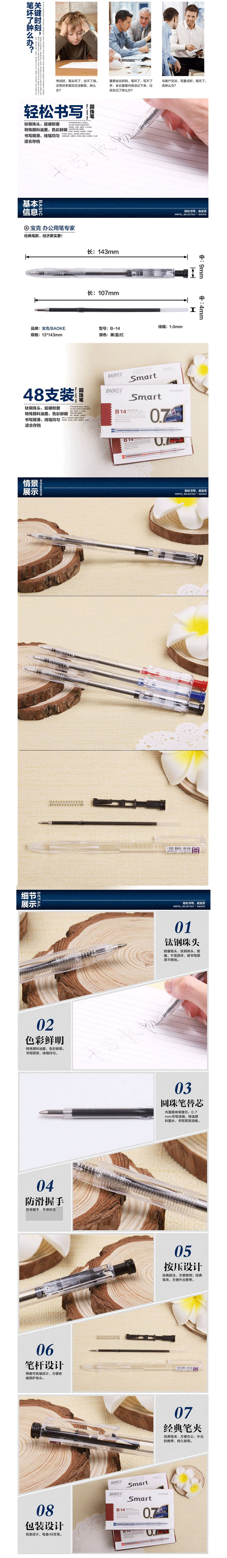 宝克(Baoke) 圆珠笔 B-14支 线幅 0.7mm 打开方式 按压式 笔 头类型 子弹头形 黑色