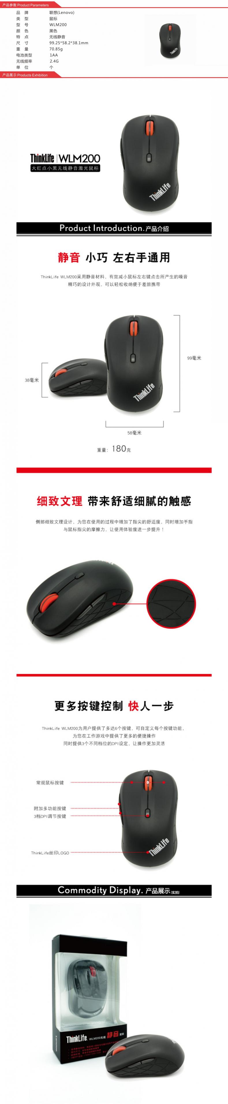商品名称 联想(Lenovo) 鼠标 WLM200 黑色 无线静音