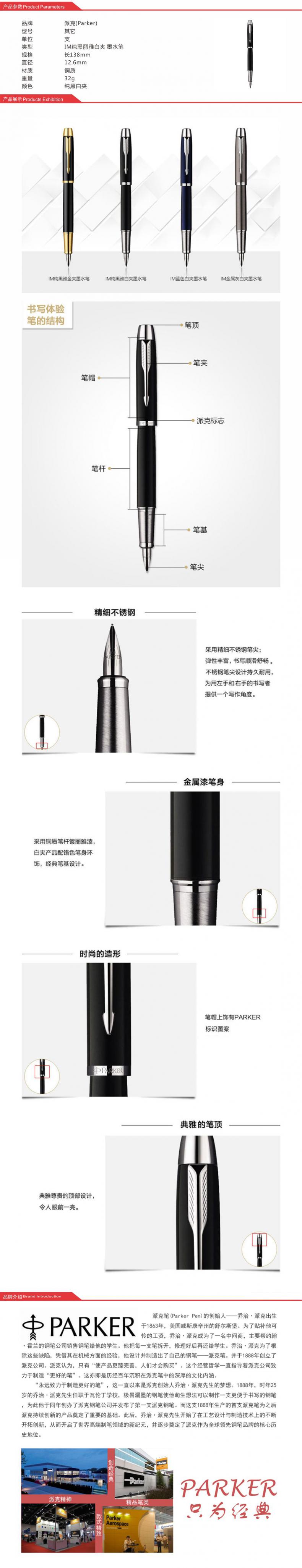 派克(PARKER) IM纯黑丽雅白夹墨水笔