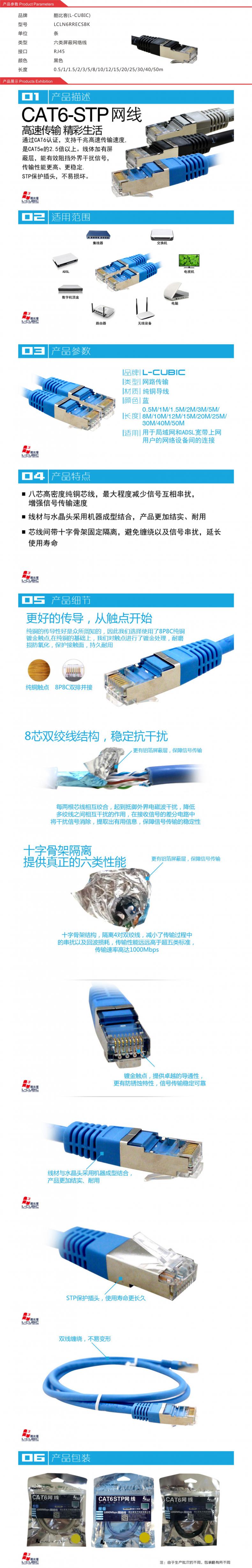 酷比客(L-CUBIC) 六类屏蔽网络线 LCLN6RRECSBK-0.5M 黑色