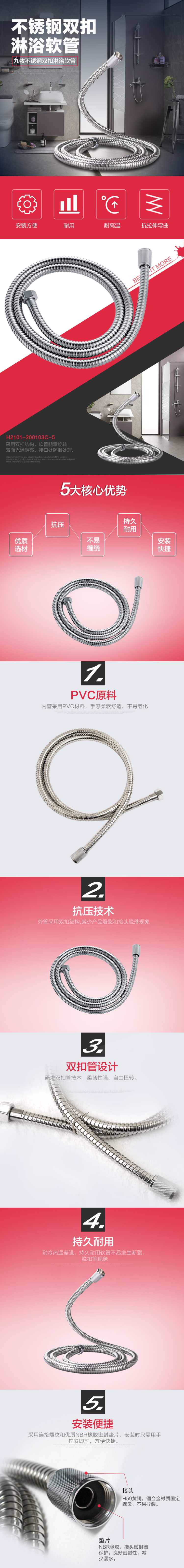 九牧 H2101-200103C-4 不锈钢淋浴软管 2米 (单位:根)