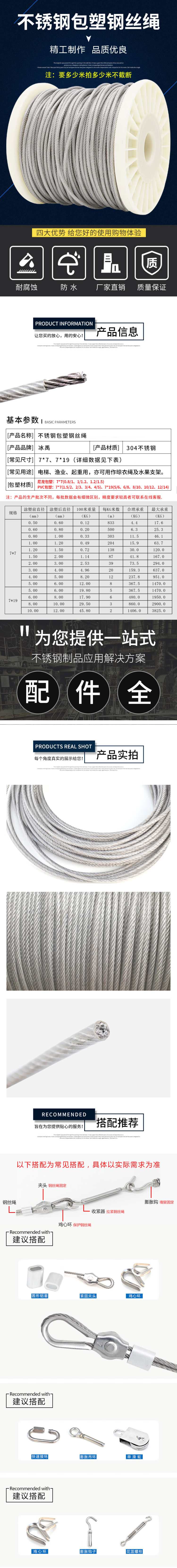 商品名称 304不锈钢透明包塑钢丝绳